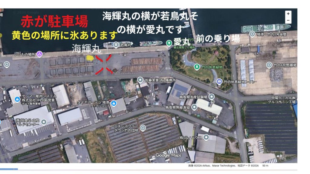 今年から船の乗り場を若鳥丸の横にしますので宜しくお願い致します。