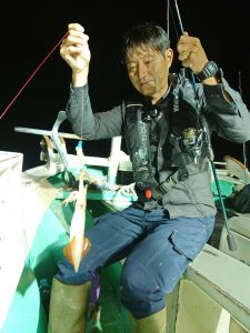 2025年9月28日 / 最終更新日 : 2025年9月28日 管理者 釣果情報 9月26日第1海輝丸2便白イカ釣り釣果 9月26日第1海輝丸2便白イカ釣り出船! 時化でしばらく出れませんでしたが、今日は波が残っていましたが出ることができました。 ポイントに着きライトオン後は、ポツリポツリと釣れ、釣れるイカにタイも食いついたりして思うように釣れませんでした。 朝マヅメも期待しましたがサバの群れや魚の反応が多く、難しかったです。 後半は波風落ち着きましたが何名かダウンしていて申し訳なかったです。またのご乗船お待ちしております。 次回から、ティップランもしますのでよろしくお願いします